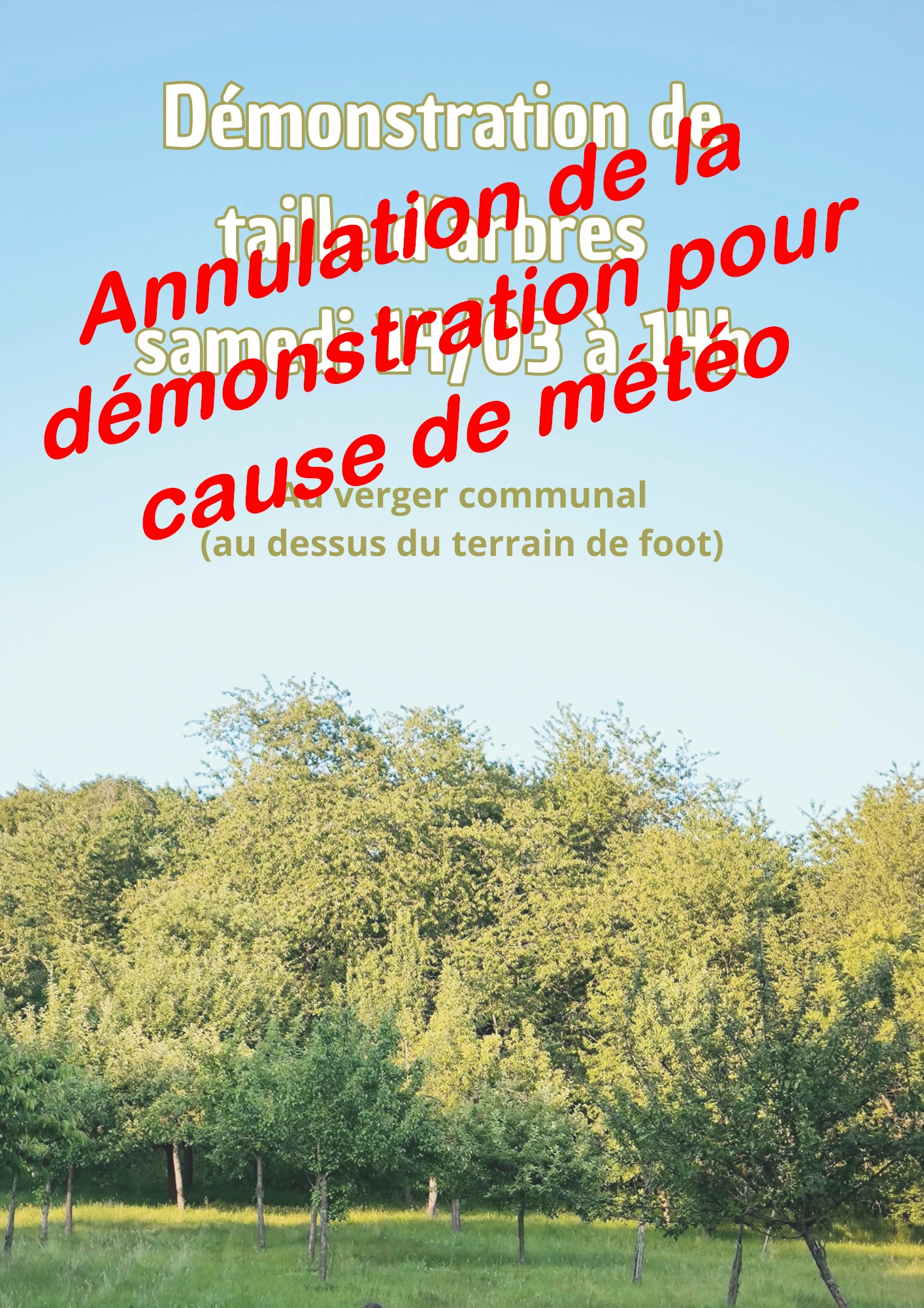 Annulation de la demonstration de taille d’arbres samedi 14 mars à 14h au verger communal d’ Orbey au dessus du terrain de foot