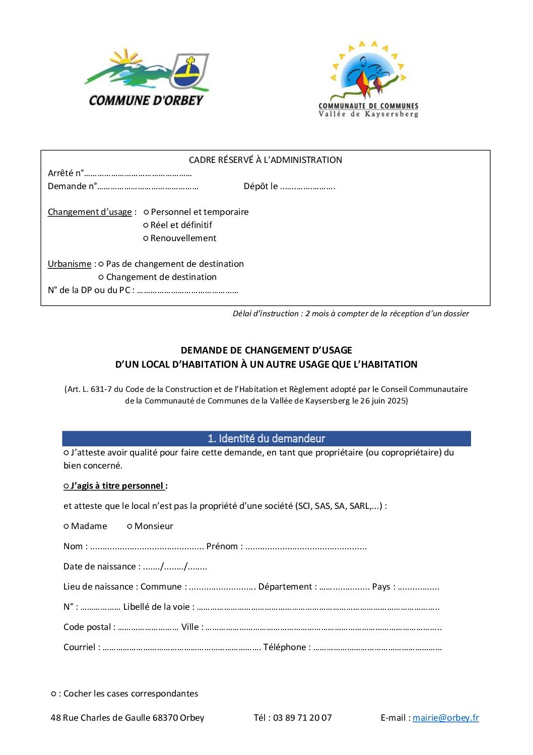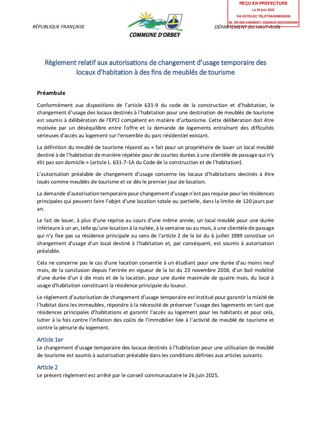 Règlement relatif aux autorisations de changement d’usage temporaire des locaux d’habitation à des fins de meublés de tourisme dans la commune d’Orbey